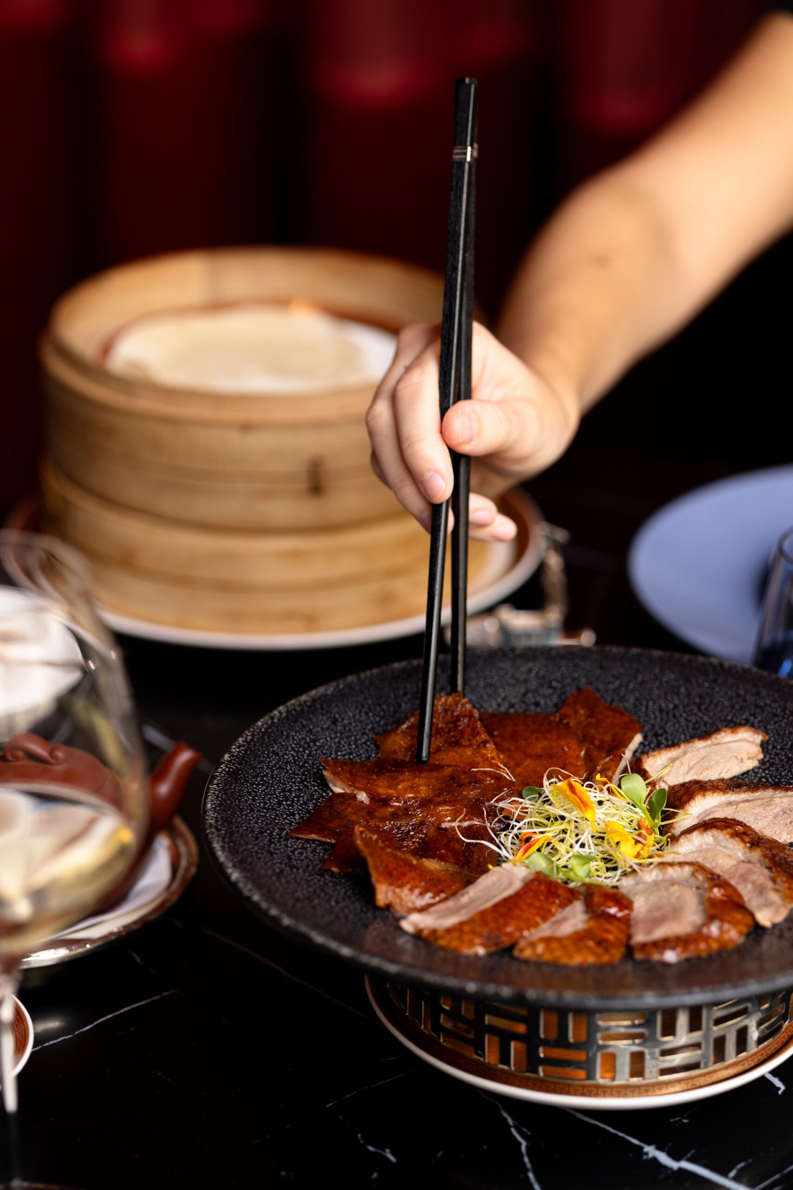 Sous les dorures et les velours somptueux de LiLi, la soirée s’écrit comme une mise en scène raffinée où Orient et Occident s’entrelacent. Aux commandes, le Chef Tak Lau Yuen propose une carte qui célèbre la délicatesse de la cuisine cantonaise dans sa forme la plus authentique. Chaque assiette, sculptée avec minutie, évoque à la fois le geste de l’artisan et l’inspiration de l’artiste — un parallèle évident avec les ateliers de couture qui rythment la semaine de la mode.